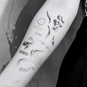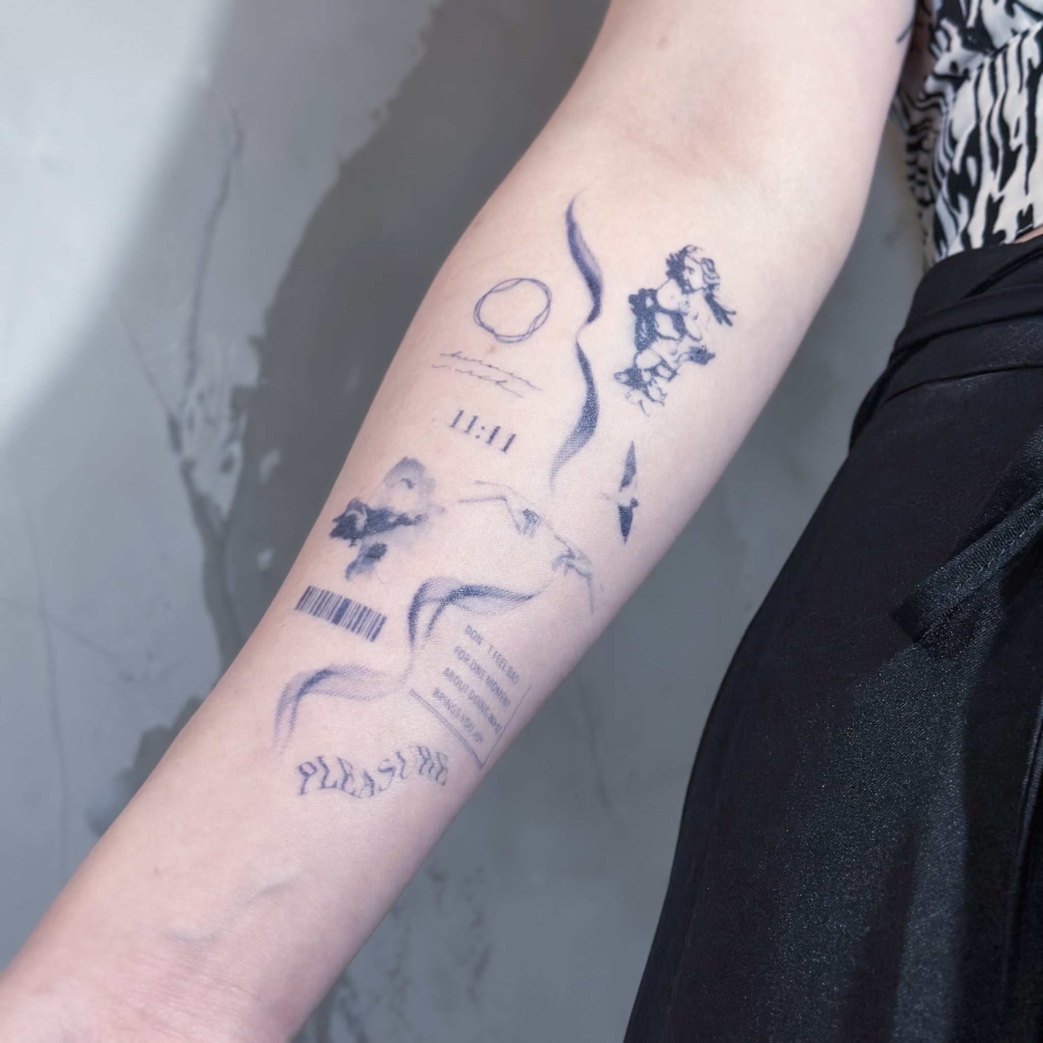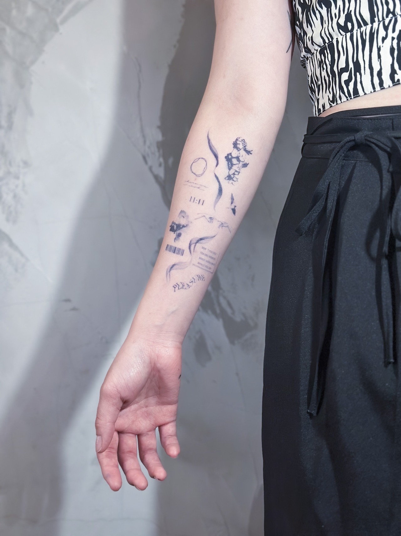 花、蛇、目、心臓——意味を持つモチーフたちが静かに並ぶ、ひとつの祈りのような構成。