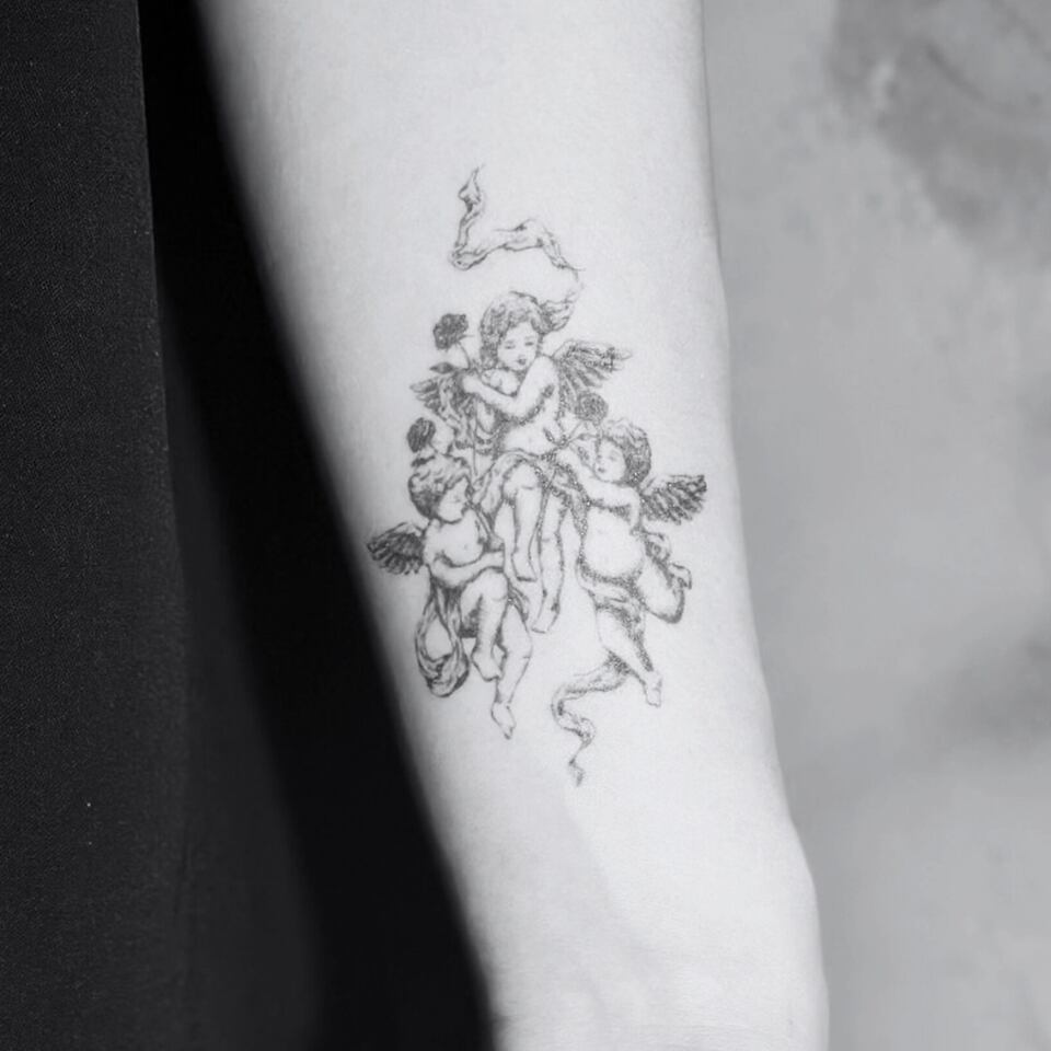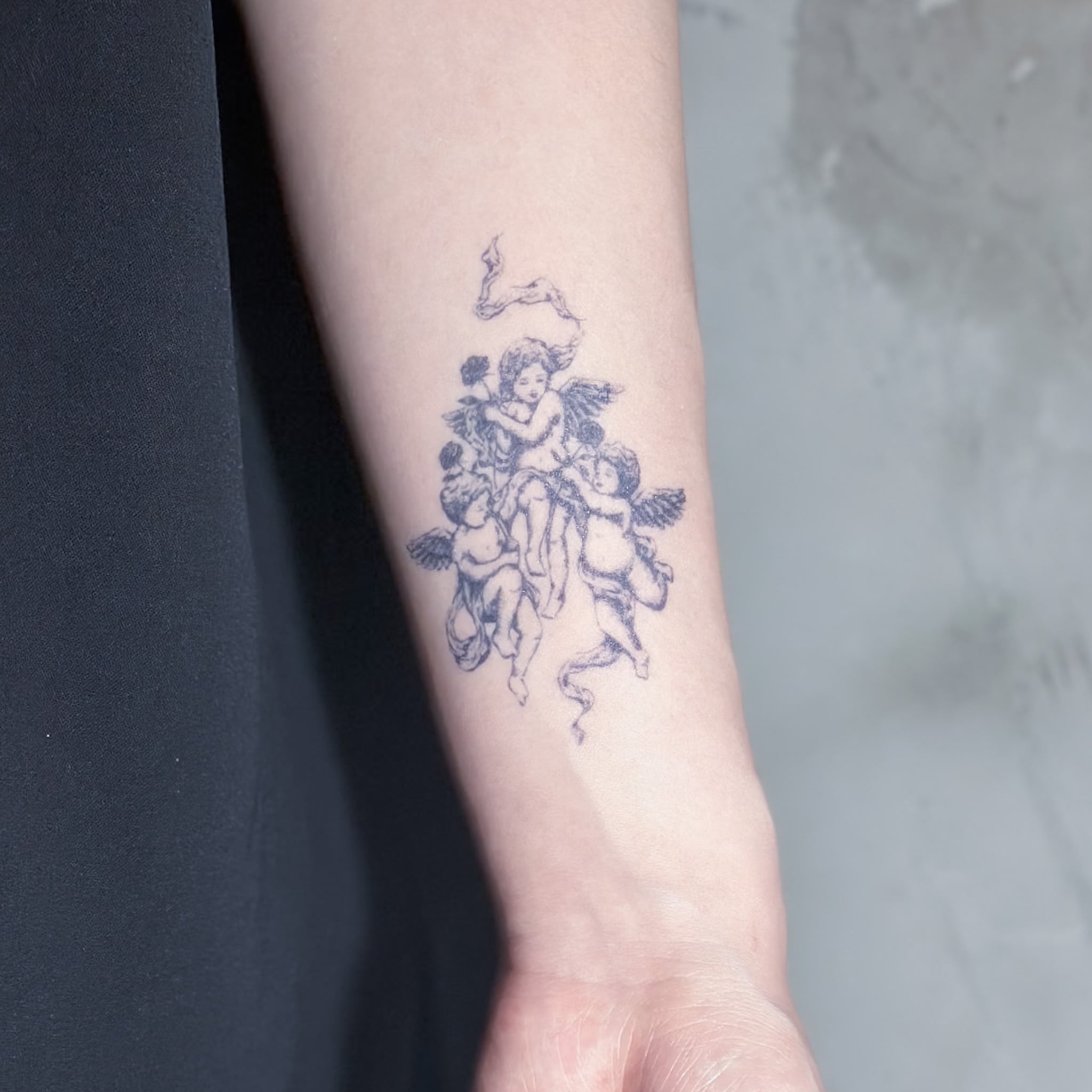 「無垢な戯れ、薔薇と天使」