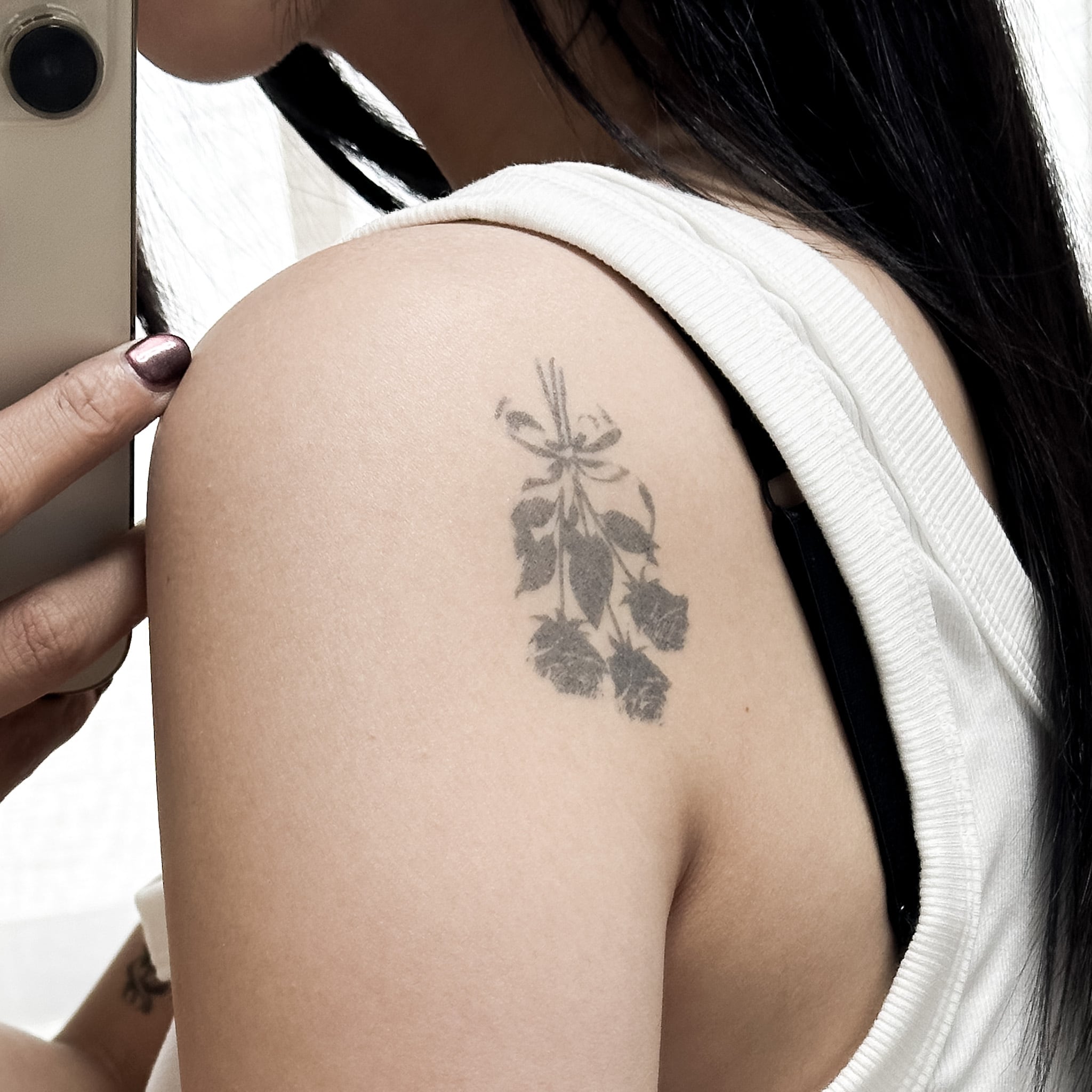 貼り付け後24時間~48時間程度で発色し、肌の代謝により10日程度でだんだんと消えていきます。